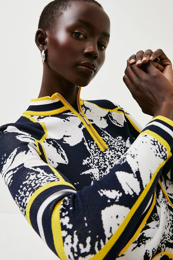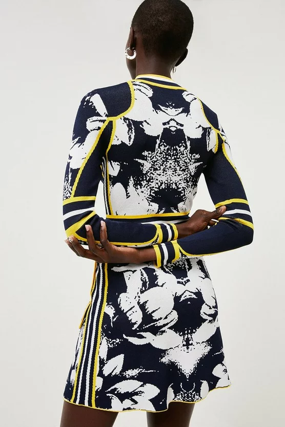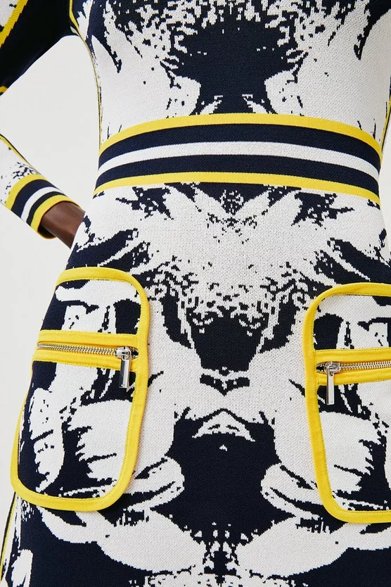 Brightly coloured seams and sporty silver-tone zips lend sports-luxe appeal to this form-fitting jacquard knit dress.. Take note of its vibrant pattern and flirty hemline – the perfect piece for those who like to stand out.