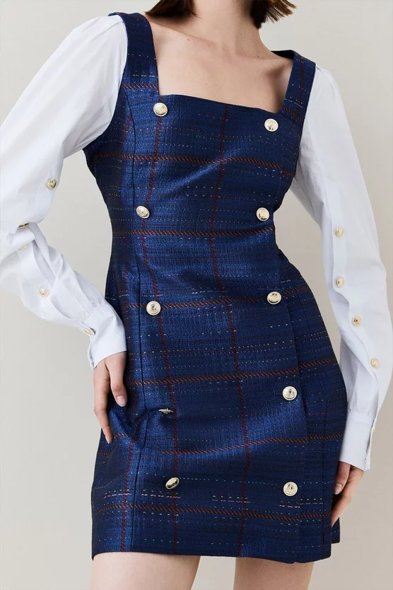 Main: 65% Polyester, 33% Cotton, 2% Acrylic. Excluding Trims: Lining: 100% Polyester. Dry Clean Only. Model wears UK 8/US 4. Model height: 5″9. Length measurement: 83cm.