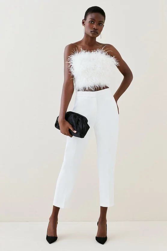 Main: 74% Polyester, 19% Viscose, 7% Elastane. Lining: 100% Polyester. Dry clean only. Model wears UK size 8/ US size 4. Model height approx 5″9. Leg length approx: 64cm.