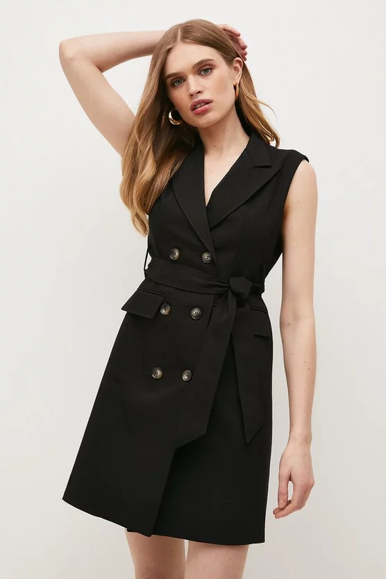 Our fresh summer-ready take on the tux dress, this belted design comes spun from soft cotton sateen fabric and features tortoiseshell-style buttons dotting the front. Cinched in with a fabric belt, it highlights the narrowest part of your figure and features notched lapels and flap-pocket detailing for a refined finish.