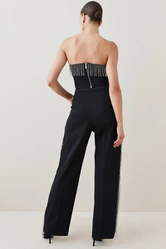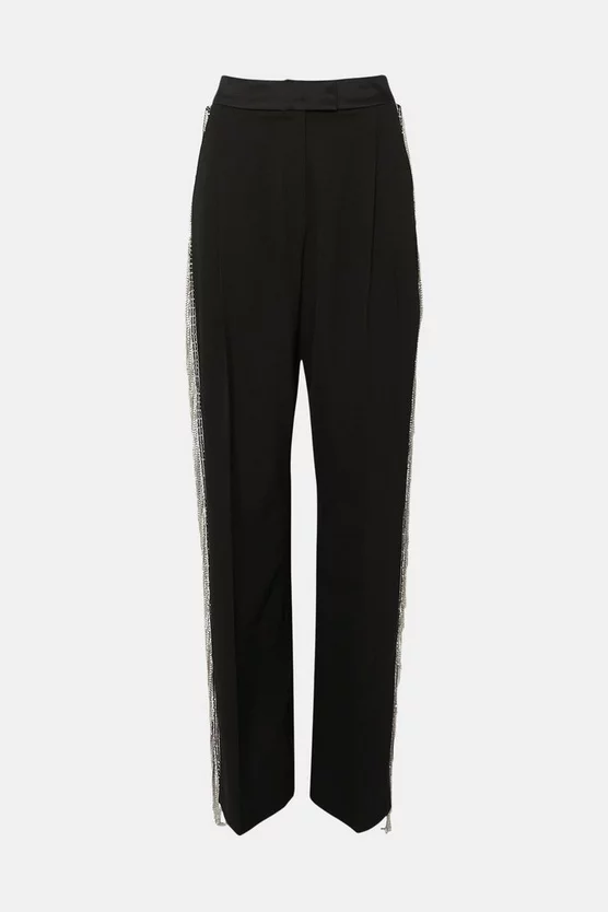 Fringed with crystal tassels, these opulent straight-leg trousers are sure to put a stylish swish in your step. Cut to a high-rise silhouette complete with zip and bar closure, they effortlessly enhance your form. Slip pockets and a relaxed fit add a sporty finishing touch.