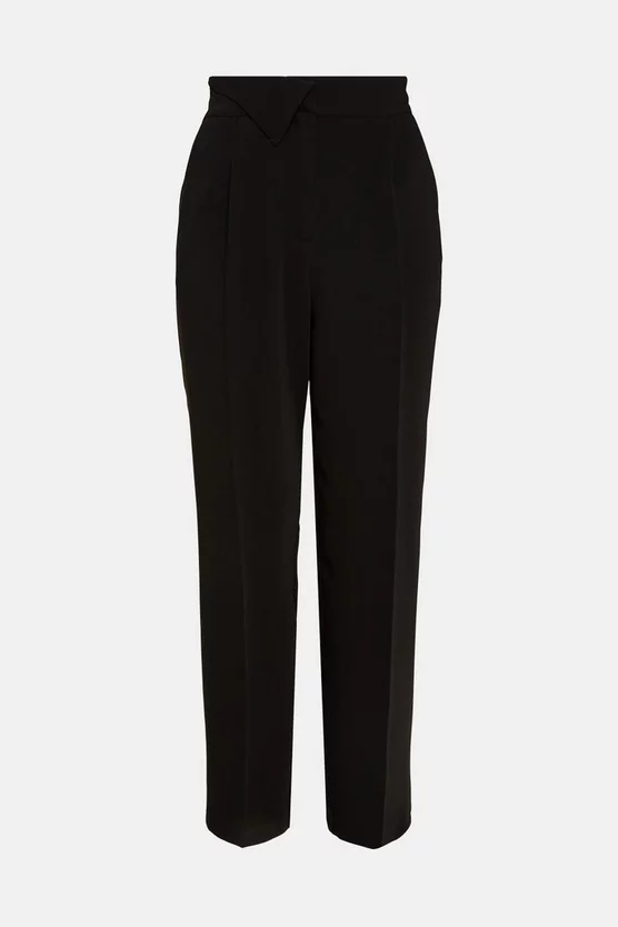 Exuding leg-lengthening appeal, these essential tailored trousers will soon become a wardrobe stalwart you reach for time and time again. They feature a draped waistline cut to a flattering high-rise fit, practical pockets and subtly cropped hems to frame your favourite footwear.