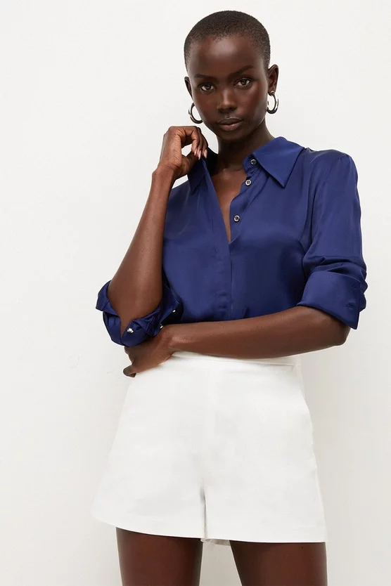 Elegant essentials start with a premium construction. Woven with cotton for an easy-breezy composition, these shorts have classic traits by way of a high-rise waist, pockets and seamless tailoring for a luxurious form. From oversized shirts to boxy blazers, this piece will take you from event to event with aesthetic ease.