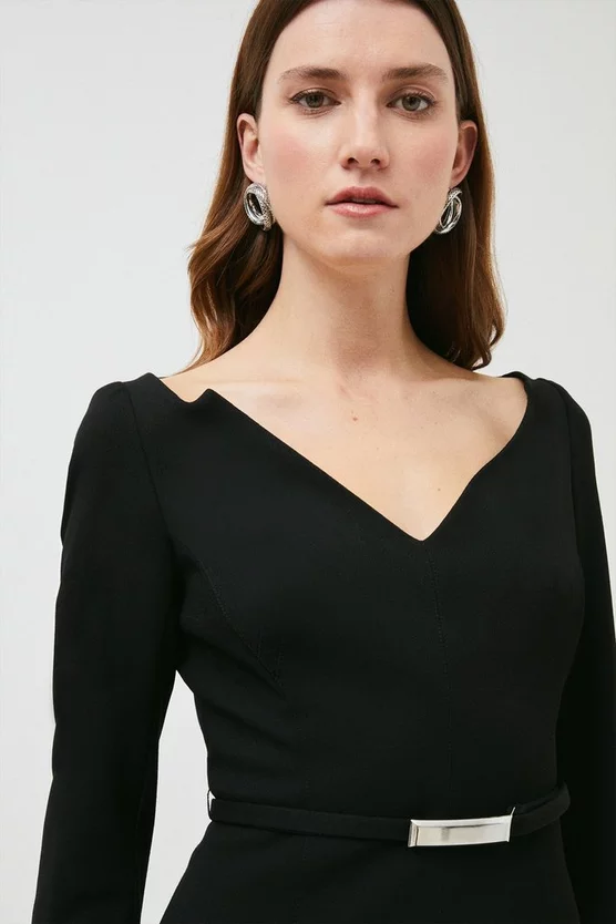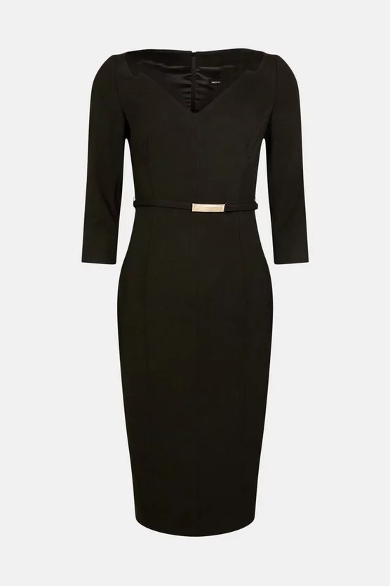Meet your forever style icon – the Forever Dress. A timeless addition to any well-considered wardrobe, this sophisticated piece features a unique notched collar, V-neck front, three-quarter length sleeves and an elegant metal bar-trimmed waist. Crafted in our signature structured fabric, it promises comfort and ease of movement for work days, dinner dates, and beyond.