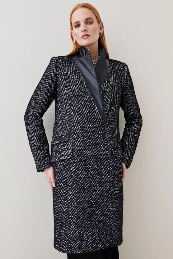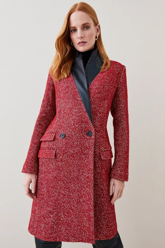 Main: 34% Wool, 28% Polyacrylic, 28% Polyester, 2% Polyamide. Excluding trims: 100% Polyester. Dry clean only. Model wears UK 8/US 4. Model height: 5″9. Length measurement: 102cm.