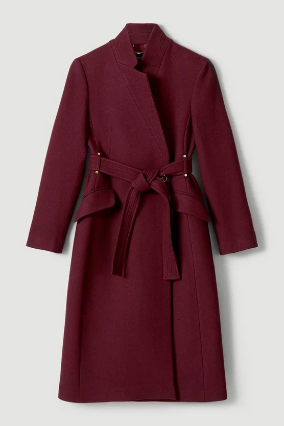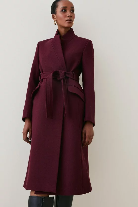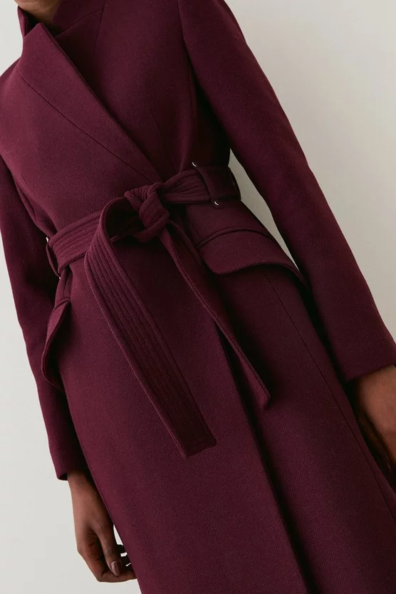 Wrap up seasonal style dilemmas with this luxurious Italian wool coat. Crafted from the finest fabrics and featuring a sophisticated wrap-front silhouette and matching belt, this polished cover-up accents smart looks with ease. Notched lapels lend a refined finish.