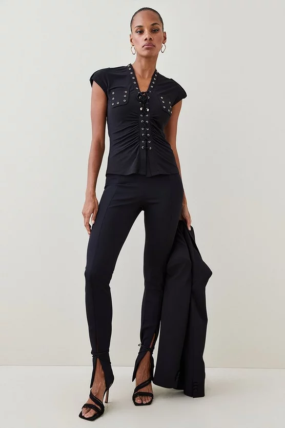Threaded with modern mastery, this jersey top appears with contemporary expertise. Punctuated by eyelet detailing, itβs finished with lace-up detailing and shoulder epaulettes for a dimensional effect.