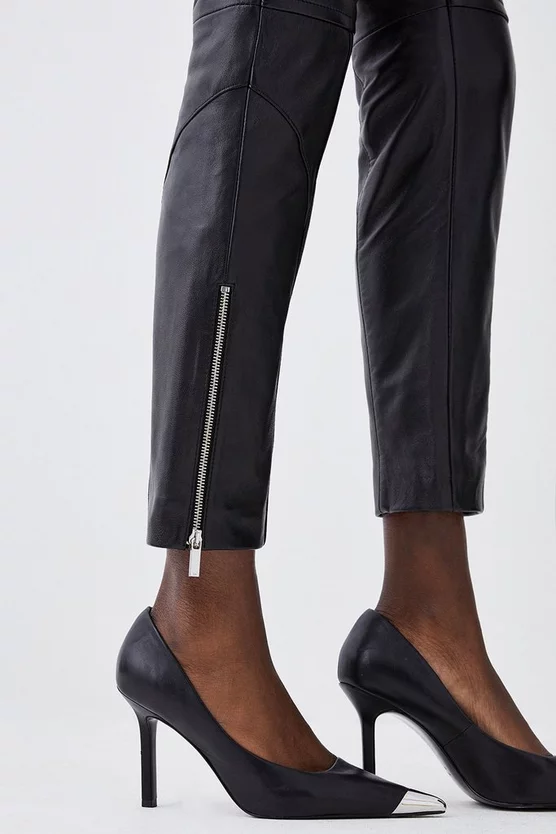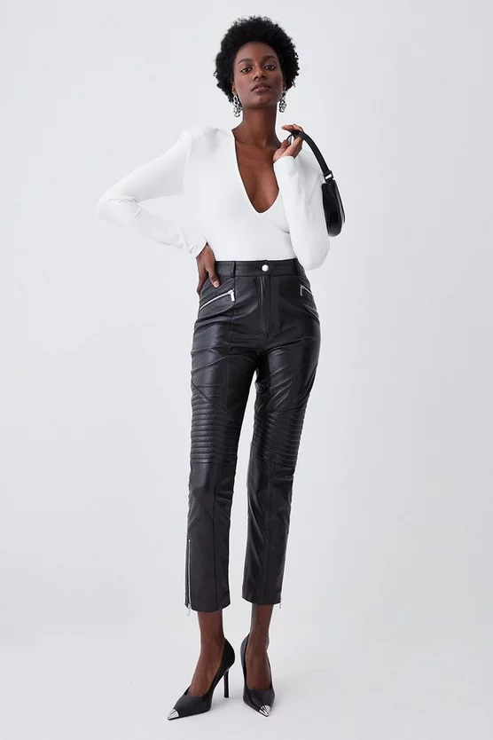 Main: 100% Responsibly Sourced Leather. Lining: 100% Polyester. Specialist Clean Only. Model wears UK size 8/ US size 4. Model height Approx: 5″9. Leg Length Approx: 74cm