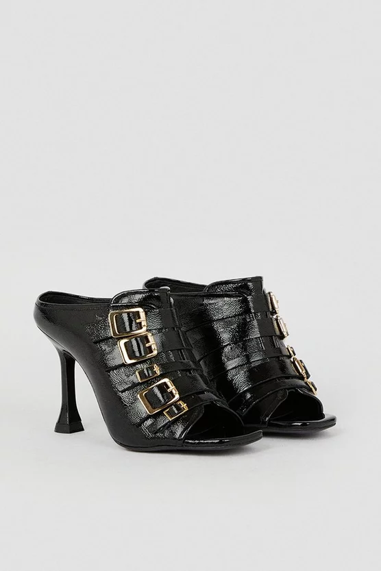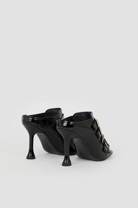 Cheap ❤️ Karen Millen Leather Buckle Detail Heeled Mule 🥰