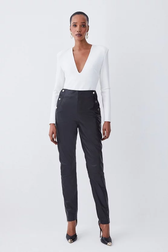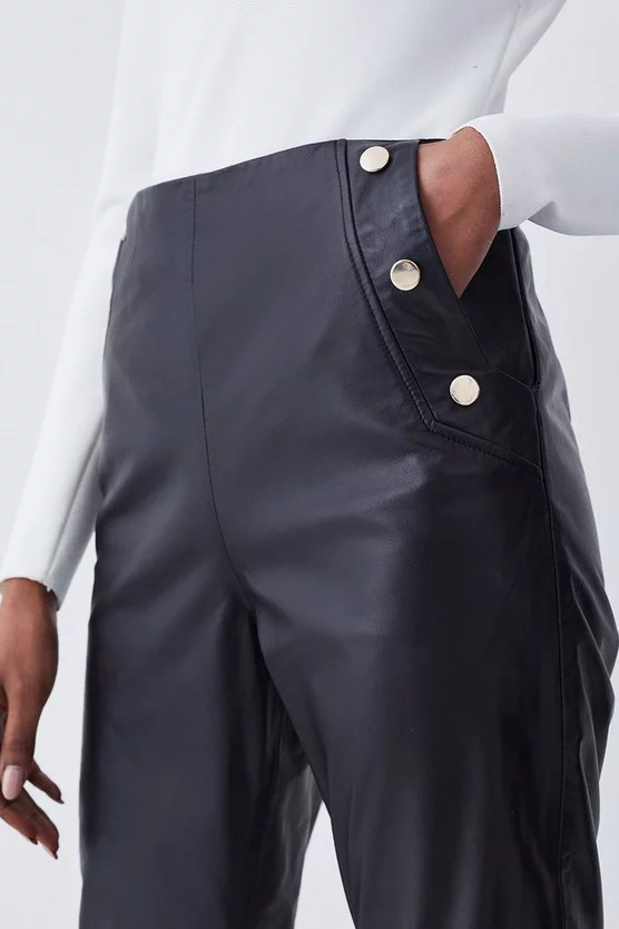 Main: 100% Responsibly Sourced Leather. Lining: 100% Polyester. . Model wears UK size 8/ US size 4. Model height Approx: 5″9. Inside Leg Length Approx: 78cm.