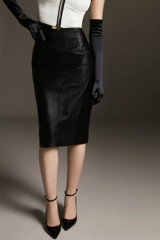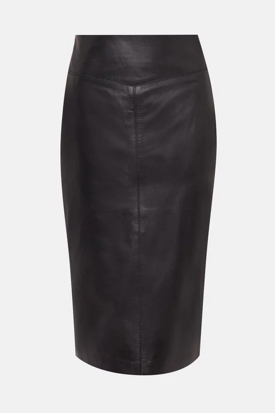 Designed to get better with age, a leather skirt is a cornerstone of any wardrobe. Crafted from a super-soft hide with expertly placed panelling thatβll beautifully hold you in, this midi is just the piece to wear all-day long.