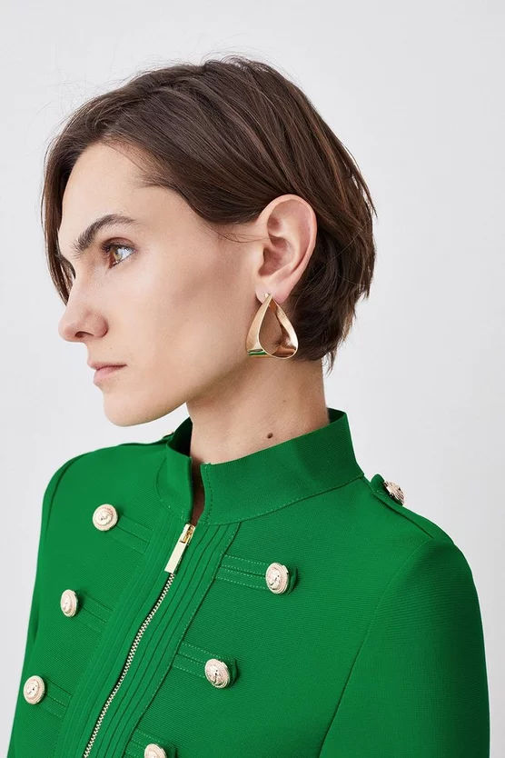 97% Recycled polyester 3%elastane Dry clean only. Model wears UK Small. Small centre back length approx 90cm.