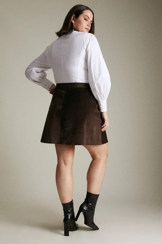 Main: 98% Cotton 2% Elastane. Lining: 100% Polyester. Dry clean only. Model wears UK Curve Size 18 US Curve Size 16. Curve size 18 centre back length: 50cm.
