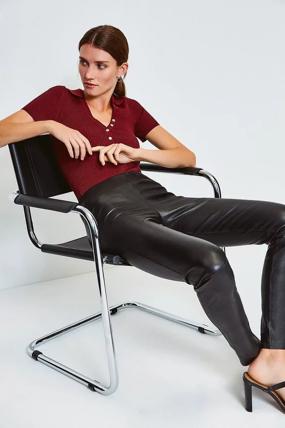 Main: 100% Lambs Leather. Lining: 100% Polyester. Do not clean. Model wears UK size 8. Inside leg 75cm