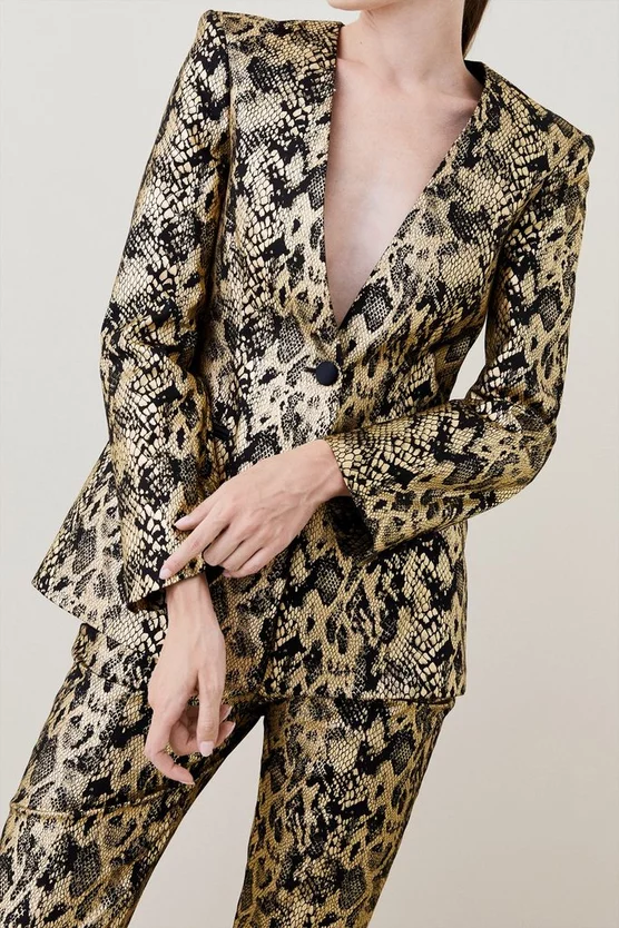 Update your tailoring collection with the streamlined aplomb of this contemporary piece. A collarless silhouette, this single-breasted piece cuts a bold form with oversized shoulders.