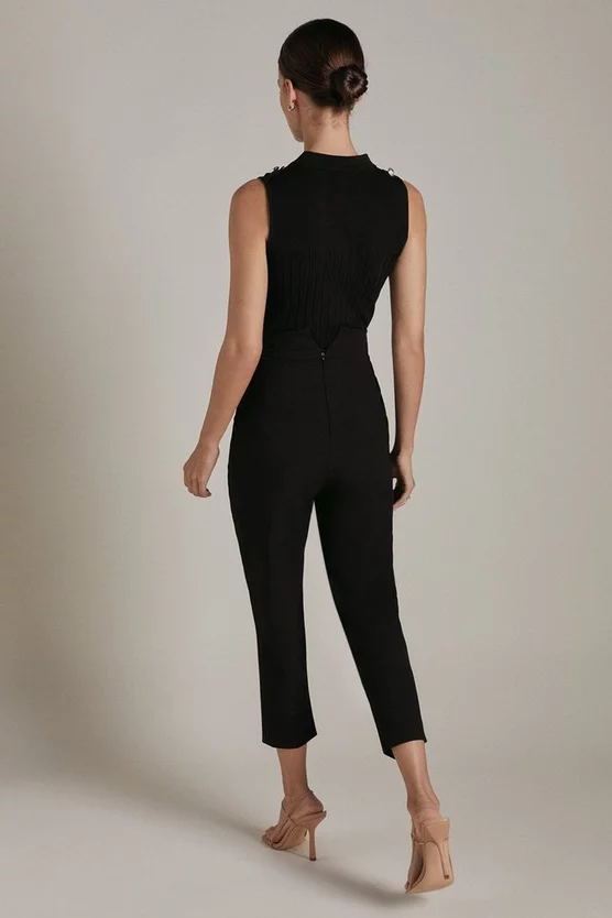 Main: 64% Polyester, 31% Viscose, 5% Elastane. Contrast: 100% Polyester with Polyurethane. Lining: 100% Polyester. Dry Clean Only. Inside Leg Length in a UK Size 10 Petite: 59cm. Model wears a UK Size 8 Petite.