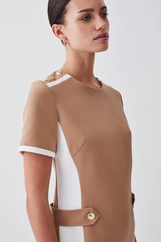 Main & Contrast: 33% Polyester, 31% Viscose, 30% Recycled Polyester, 6% Elastane. Lining: 100% Polyester. Dry clean only. Model wears UK 8/US 4. Length measurement: 79cm.