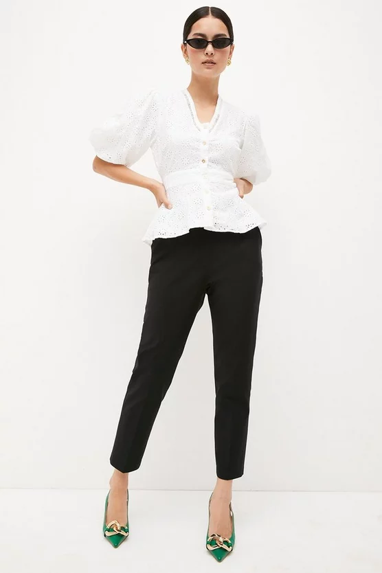 Timeless tailoring for the true sartorial curator. Built for season-to-season outfit building, the straight leg trousers are a tried and tested wardrobe treasure. They have a high-rise waist, side pockets and a seamless construction. Landing at a cropped length, channel Parisian elegance with classic loafers by day and glossy stilettos by night.