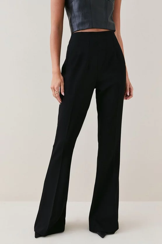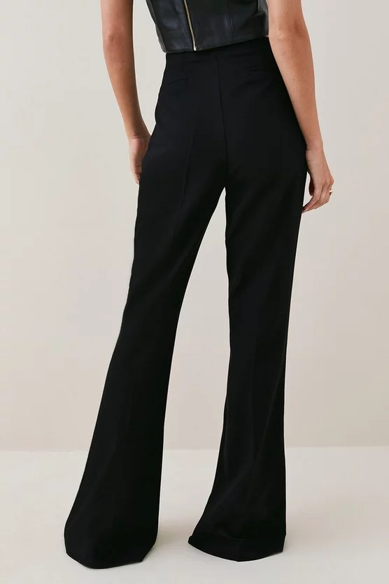 Showcase a penchant for proportional tailoring with this contemporary classic. Boasting wide legs, these trousers define the waist with a high rise and practical slip pockets. They have pressed creases for added dimension and flared hems for endless ?70s appeal. Designed for a lifetime of streamlined ensembles, pair with a rotation of tops for season-to-season ease.