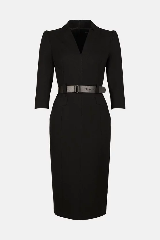 Crafted to make you feel your best, our signature Forever Dress deserves a place in every womanβs wardrobe. From seams on the front to its back panelling, this piece has been designed to flatter the figure perfectly. No detail left unconsidered, itβs been finished off with a notched Queen Anne neck (thatβll show off your collarbones beautifully), bracelet-length sleeves, faux-leather skinny belt, jet pockets and a back vent.