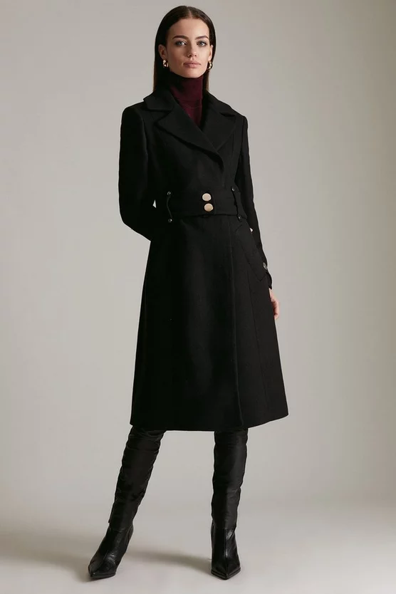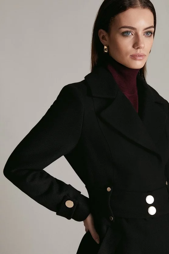 Punctuated with tonal poppers, this smart belted coat adds a sense of elegant edge to any outfit. It comes crafted from luxurious Italian wool and features slip pockets, a notched collar and belted cuffs for a utilitarian twist.
