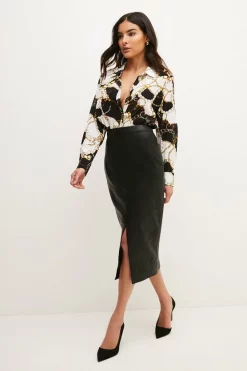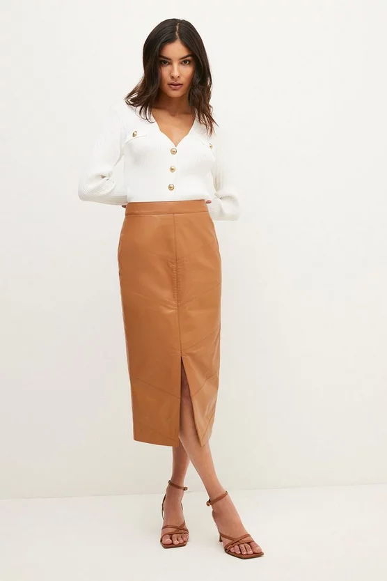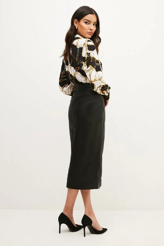 This garment is READY FOR THE FUTURE. It is made with responsibly sourced leather from tanneries working to reduce their environmental impact. Main: 100% Responsibly Sourced Leather. Lining:100% Polyester. Specialist Dry Clean Only. Model wears UK size 8/ US size 4. Centre back length of a UK size 8: approx 78cm.