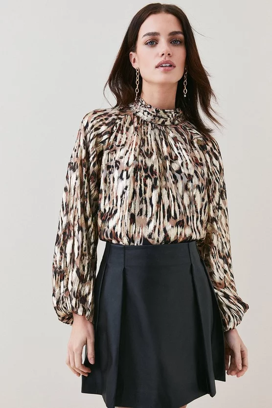 100% polyester. Gentle machine wash at 30 with similar colours. Model wears a UK 8/US Size 6.
