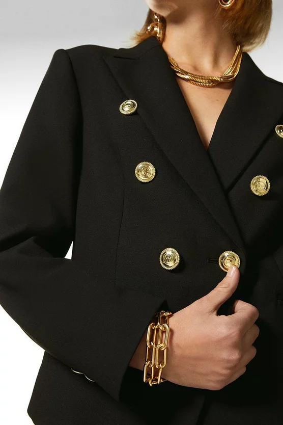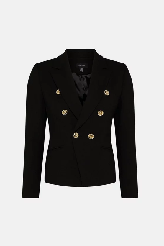 Accented by our signature KM-logo embossed buttons, this military-inspired jacket is a future wardrobe classic. Tailored to fit you impeccably thanks to its nipped-in waist, inseam pockets (for a streamlined finish) and double-breasted closure front, the structured shoulders also give the piece an ultra-flattering shape.