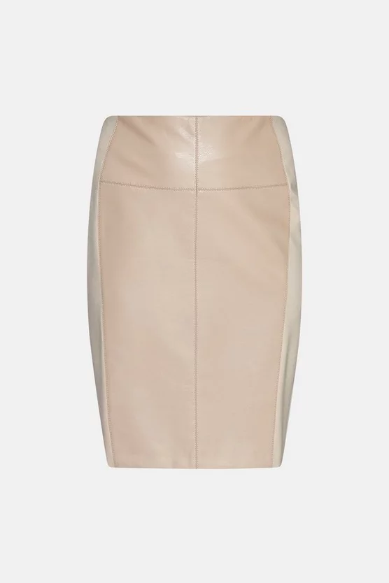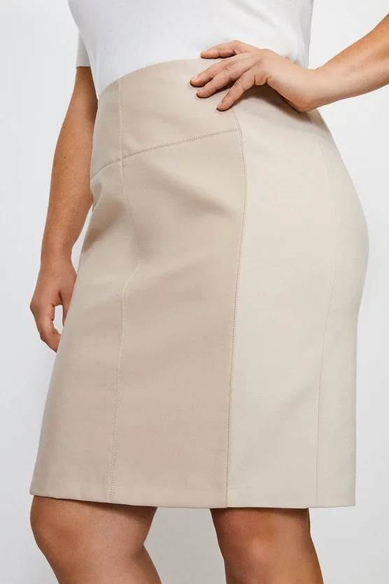 Main: 71% Viscose, 25% Polyamide, 4% Elastane. Contrast: 100% Polyester with Polyurethane Coating. Lining: 100% Polyester. Dry Clean Only. Centre Back Length in a UK Size 18: 57cm. Model wears a UK Size 18.