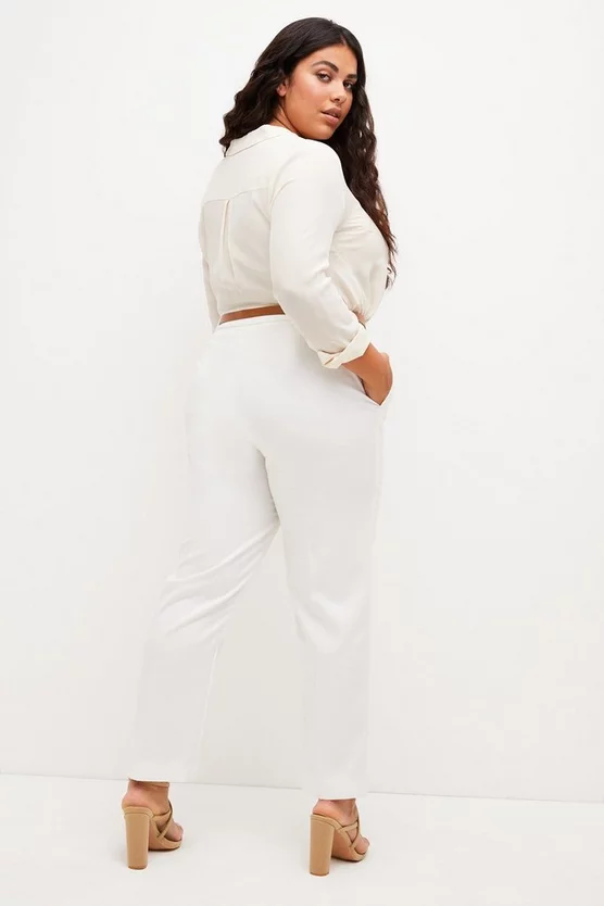 Main: 36% Recycled Polyester, 30% Polyester, 32% Viscose, 2% Elastane. Lining: 100% Polyester. Dry clean only. Model wears UK 18 US 14. UK 18 inside leg length: approx 77cm