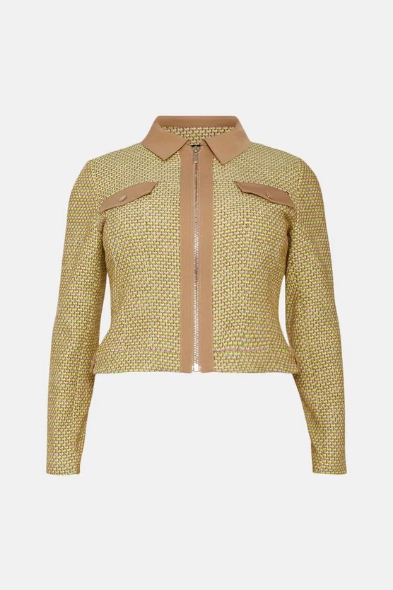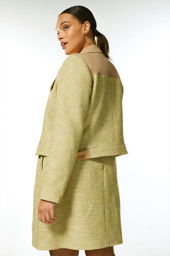 Main: 55% Polyester, 35% Cotton, 9% Viscose, 1% Elastane. Contrast: 73% Polyester, 22% Viscose, 5% Elastane. Lining: 100% Polyester. Dry Clean Only. Centre Back Length in a UK Size 18: 47cm. Model wears a UK Size 18.