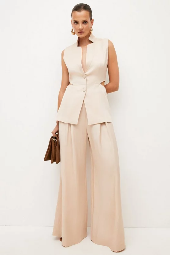 Main: 72% Viscose/Rayon, 28% Linen. Lining: 100% Polyester. Dry clean only. Model wears UK 8/US 4. Model height: 5″9. Length measurement: 83cm.
