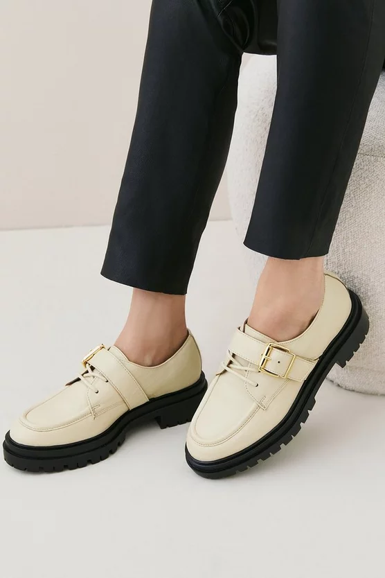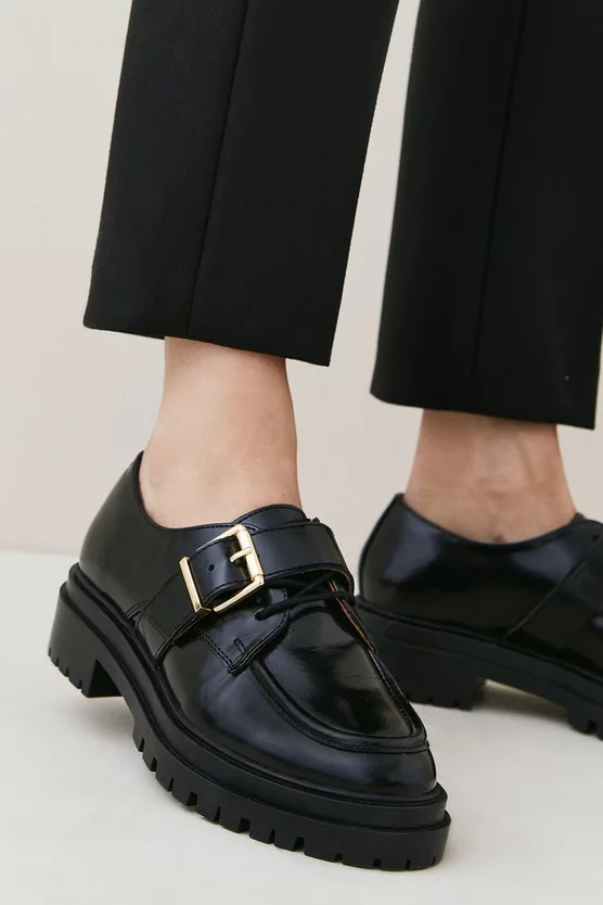 Upper: Leather, Lining: Leather, Insock: Leather, Sole: Tpr, Trims: Metal Buckle + Lace. Origin: India