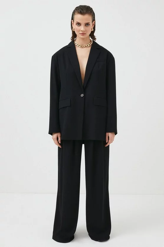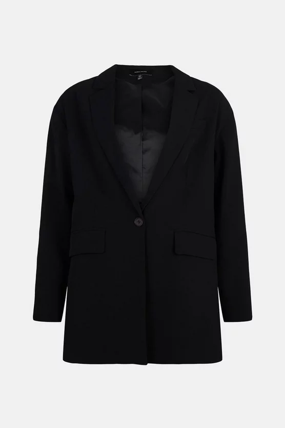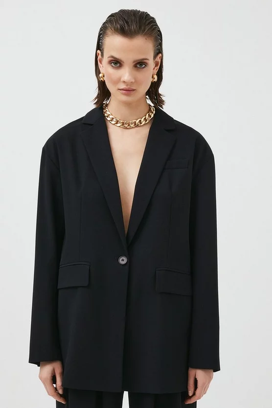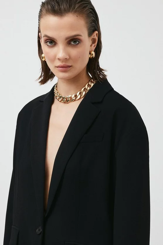 Play with proportions in this on-trend tailored jacket. Crafted from soft twill for a laid-back sense of structure, its oversized fit and longline design make it a must-have piece for those with an eye for current trends. It fastens with a single glossy button closure, offsetting flap pockets and classic notched lapels for that ultra-covetable, borrowed-from-the-boys feel.