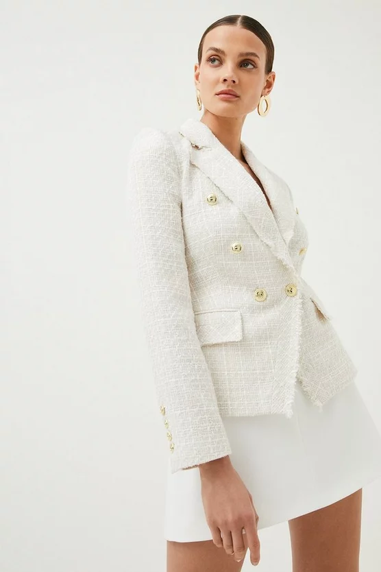 Strike a sophisticated style note at the office and beyond in our smart tweed blazer. Softly tailored for a refined finish, it features subtly sparkling flecks and glossy gold-tone buttons sure to catch the eye.