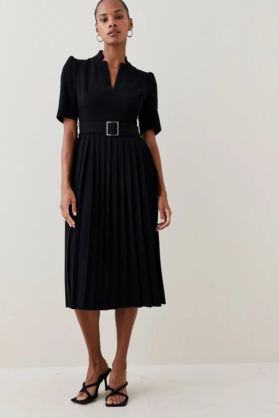 Main: 64% Polyester, 31% Viscose, 5% Elastane. Lining: 100% Acetate. Dry Clean Only. Model wears UK 8/US 4. Model height: 5″9.