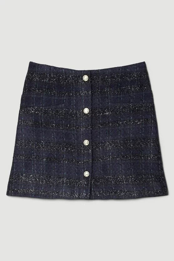 Main: 76% Acrylic, 11% Cotton, 10% Polyester, 3% Metallised fibres. Lining: 100% Polyester. Dry clean only. Model wears UK 8/US 4. Model height: 5″9. Length measurement: 45cm.