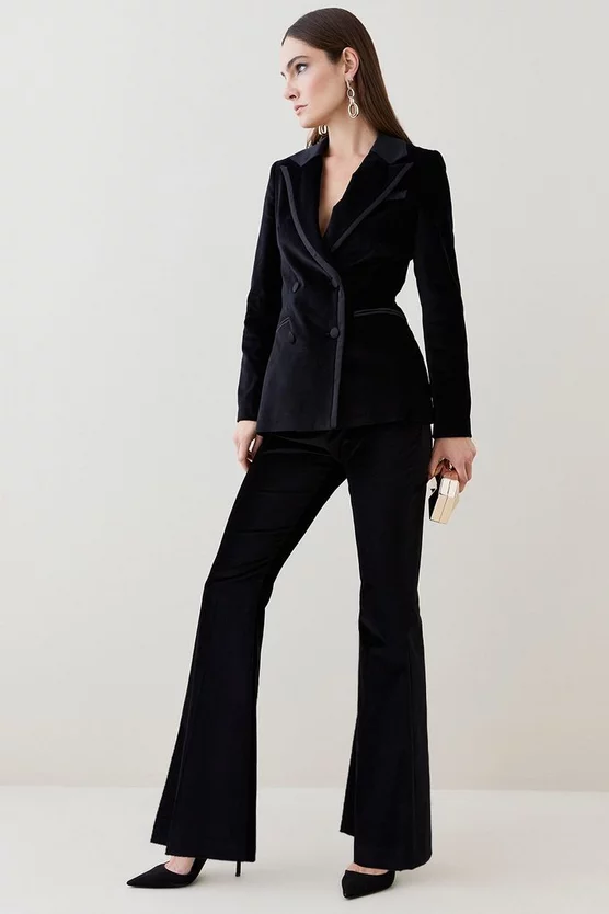 Main: 73% Cotton, 25%, Modal, 2% Elastane. Excluding trims: Lining: 100% Polyester. Dry clean only. Model wears UK 8/US 4. Model height: 5″9. Leg length measurement: 83cm.