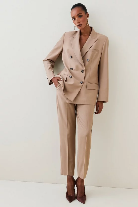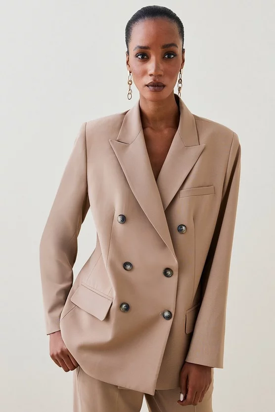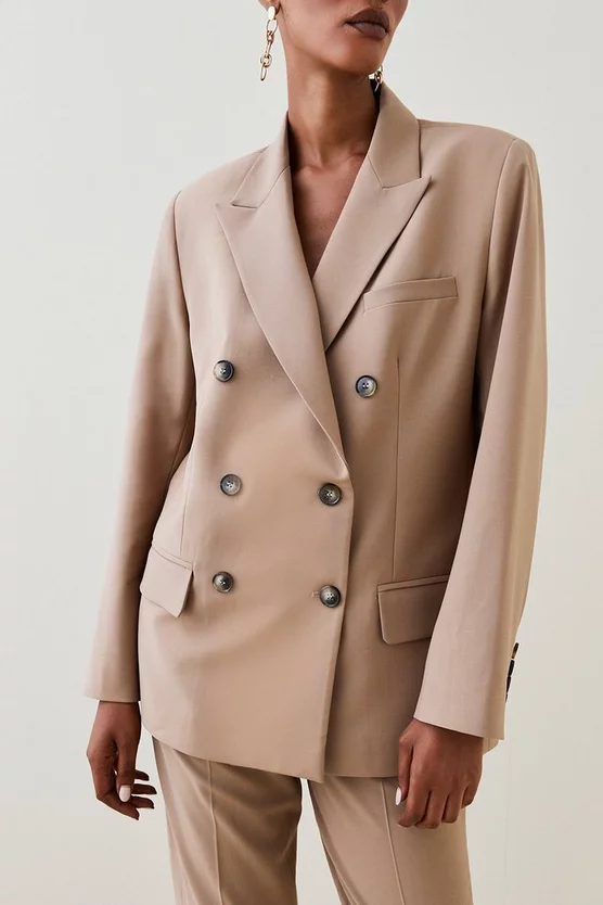 The timeless jacket your tailoring collection has been waiting for, this loosely cut design features double-breasted buttons, flap pockets and sharply notched lapels. Worn with high-rise trousers, jeans or pencil skirts, this classic piece will soon become a cherished part of your capsule wardrobe.