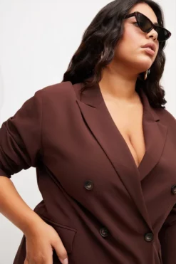 Coupon โ๏ธ Karen Millen Plus Size Soft Twill Ruched Sleeve Double Breasted Jacket ๐