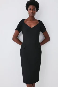 Best Pirce ❤️ Karen Millen Plus Size Structured Crepe Cross Detail Midi 👗 Dress 👏