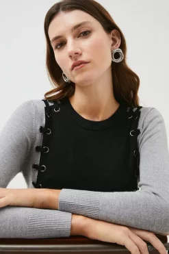 Budget 😍 Karen Millen Faux Leather And Ponte Long Sleeve Top 😀